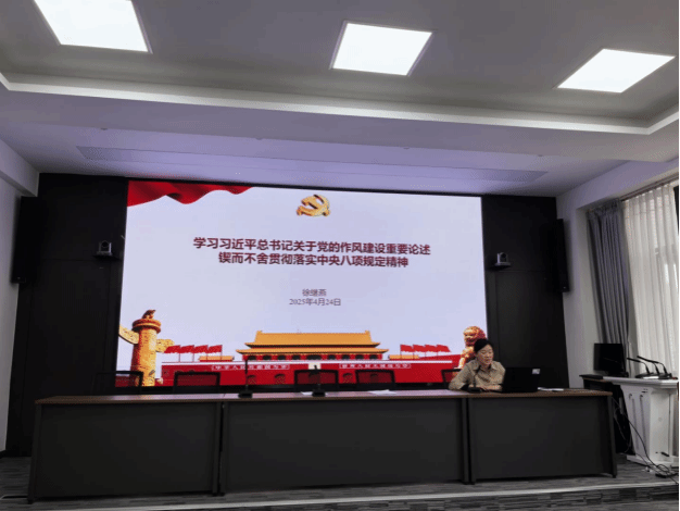 为深入学习贯彻中央八项规定精神,强化作风纪律,推进学习教育扎实开展,4月24日下午,党总支书记徐继燕围绕“学习习近平总书记关于作风建设的重要论述 锲而不舍贯彻落实党中央八项规定精神”的主题,结合总支工作实际,为全体党员上了一堂内容深刻的专题党课,学院全体教职工参加学习。