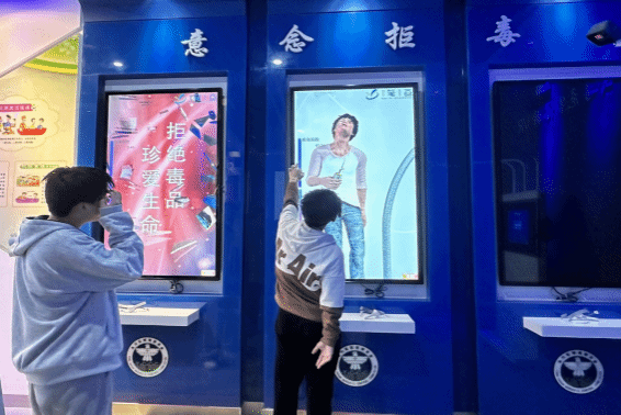 在法治互动体验区,学生借助现代科技手段沉浸式参与VR禁毒体验,直观认识毒品的危害,增强拒毒防毒意识;