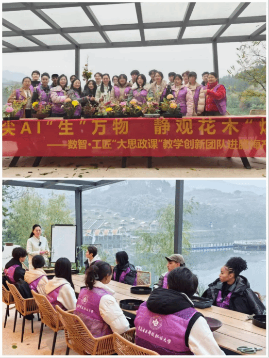 “不肯皎然争腊雪,只将孤艳付幽香”。初冬时节,腊梅花开,重庆电子科技职业大学马克思主义学院数智·工匠“大思政课”教学创新团队联合《我身边的工匠榜样》和《中国共产党历史》课程团队的5名思政课教师,带领16名学生(其中包括4名来自非洲马达加斯加和摩洛哥的留学生),走进“中国腊梅之乡”——重庆北碚区静观镇。师生们实地探访“静观插花艺术”非物质文化遗产传承人、“全国农业农村劳动模范”、“全国农村创业创新优秀带头人”、“重庆市三八红旗手”、“重庆市巴渝巾帼新农人”邓纪会老师,深入探寻指尖技艺如何赋能乡村振兴、带领乡亲们共同富裕的核心密码。